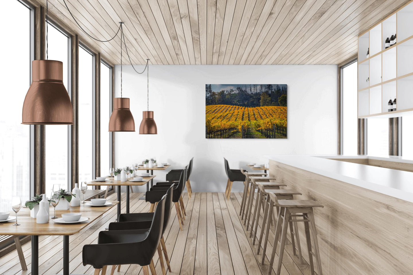 A wonderful home or office print choice for California and wine enthusiasts. Perfect for a tasting room, dining room, restaurant or bar.